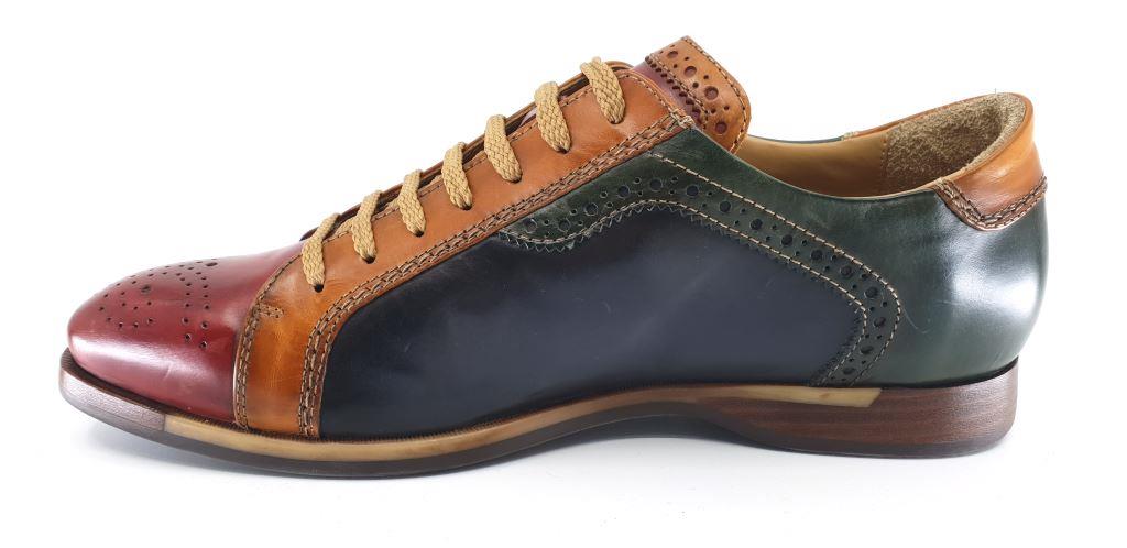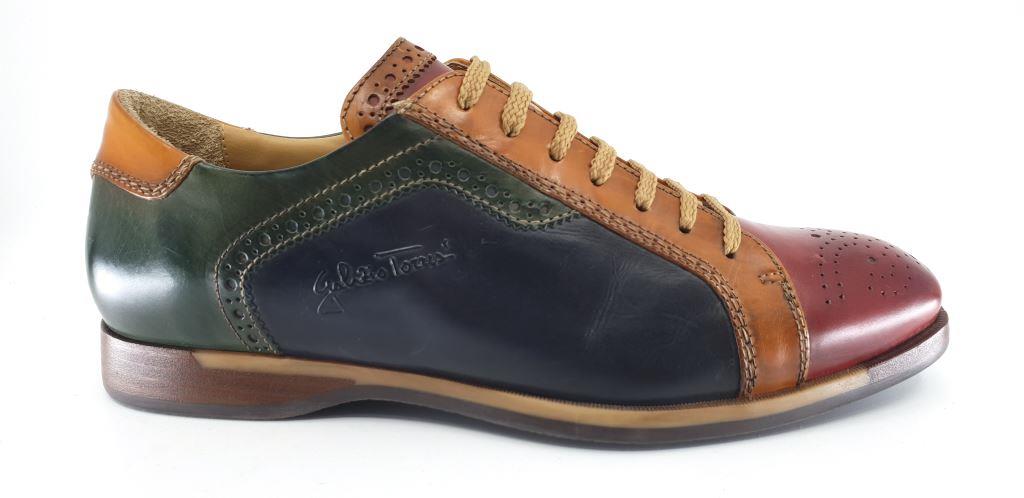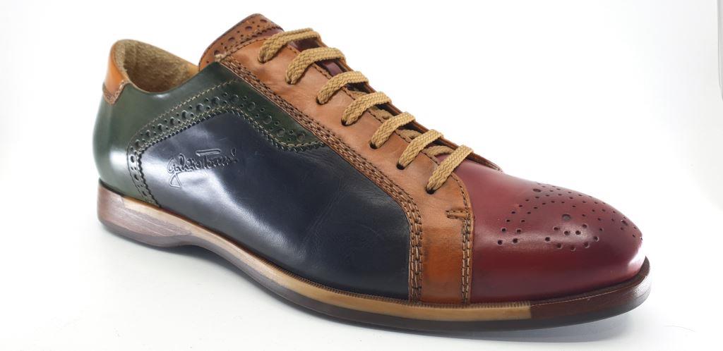 A stunning smart casual shoe by Galizio Torresi featuring an array of colours that beautifully blend together. Made with quality calf leather upper on a stitched rubber sole. An outgoing men's shoe that pairs well with denim jeans.